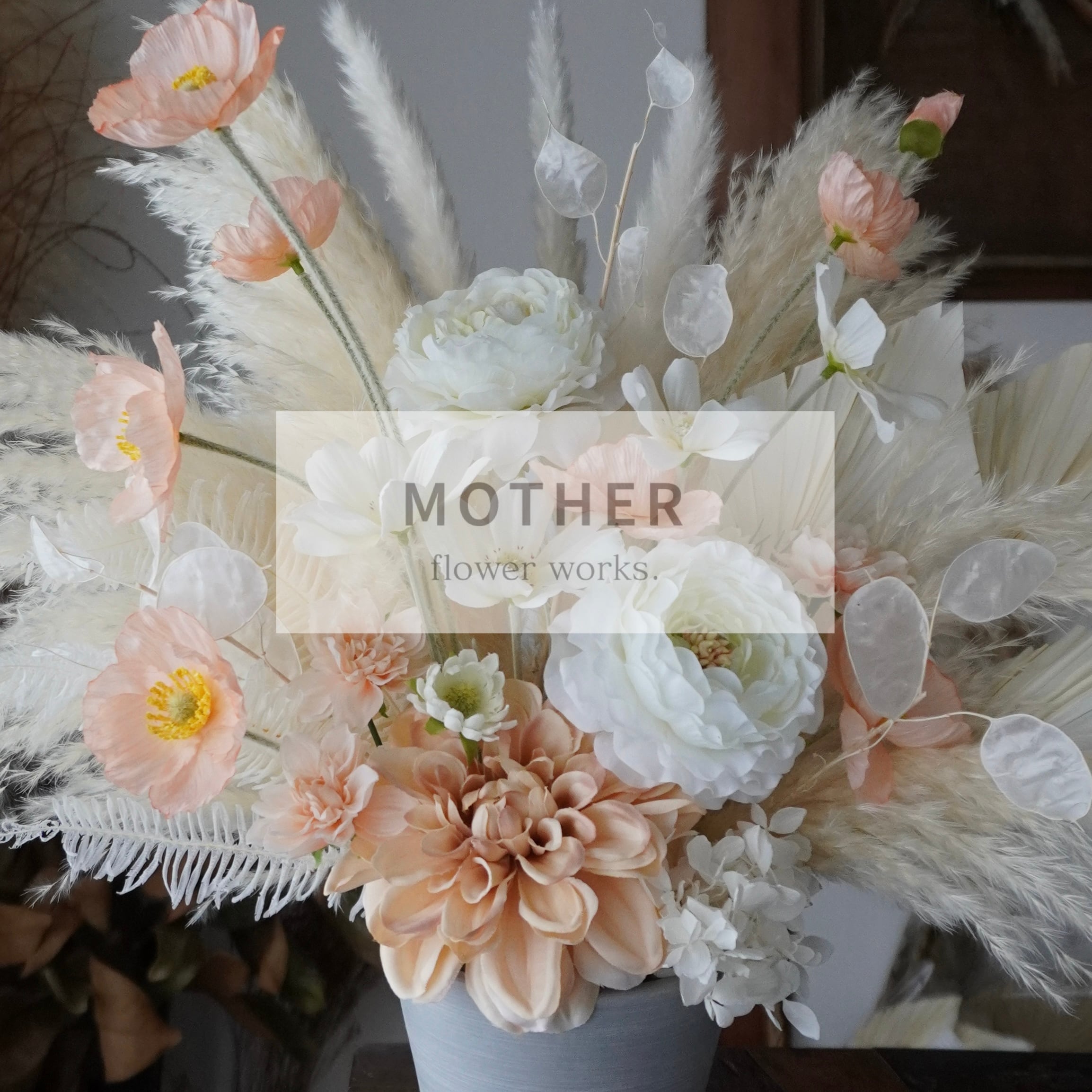贈ったあとも、ずっと飾り続けられる。 時間が経っても、気持ちが色褪せない。 そんなお祝いの花を作りました。 箱を開けたらそのまま飾れるため、 水やり不要で、忙しい日常にもそっと寄り添います。 すべて一点もののため、 同じ表情のものは二つとありません。 開店祝いや周年祝い、新築祝いなど 大切な節目に。 飾り続けられる美しさは、 「おめでとう」や 「これからも応援しています」という想いを、 そっと長く伝えてくれます。 おおよそのサイズ(cm)35×40 ※花瓶等映り込み雑貨は含みません ※写真のメッセージカードは一例です ※ラッピングはイメージです ⚫︎写真のラッピングはグレージュです ⚫︎恐れ入りますが、領収書の発行は行っておりません。 注文完了メールや決済明細をご利用ください。 ◾︎ 立札/メッセージカード (オリジナルメッセージ※有料¥50 は備考欄へ) ◾︎ 選べる支払い方法 クレジットカード/コンビニ決済/PayPay/キャリア決済他 ◾︎ 選べるラッピングイメージ ◾︎ お贈り先へ直接、お届け可能です。その先はお送り先様情報・ご購入者様情報 それぞれご入力くださいませ ⚪︎発送日数 受注制作を除き5日以内の発送 ・ご注文日を0日目とします ・日・祝は日数に含みません ⚫︎日時指定⚫︎ 日時指定の際はご注文日より7日以降〜14日以内でのご指定をよろしくお願いいたします ※上記以外のご希望の方は事前にお問い合わせをお願いいたします ※※ヤマト運輸では、下記の時間帯からお選びいただけます。 * 午前中(8:00~12:00) * 14:00~16:00 * 16:00~18:00 * 18:00~20:00 * 19:00~21:00 * 20:00~21:00 ※「午前中」は時間を細かくご指定いただけません ⚪︎メッセージカードの内容を備考欄にお願い致します (例)・Congratulations!〇〇〇 ・祝 御開店 〇〇〇 など 新築祝い・開店祝い・周年祝い・就任祝い・誕生日プレゼント・母の日ギフト __________________ ご購入の際のお願い ※必ずご一読いただき、ご了承のうえでお手続きをお願いいたします。 * 鋭利なワイヤーや繊細な花材を使用しております。お取り扱いには十分ご注意ください。 * ご注文後すぐに発送準備に入りますため、お客様都合でのキャンセルはお受けできません。 * 商品によっては同梱が可能な場合がございます。複数ご購入を希望される際は、必ず購入手続き前にご連絡ください。購入後の変更は承れませんので、あらかじめご了承ください。 商品について * すべて繊細な素材を使用して製作しております。梱包には細心の注意を払っておりますが、配送中の振動により花びらなどが外れる場合がございます。 * 湿気の多い場所や直射日光の当たる場所でのご使用は、退色や劣化の原因となります。 * プリザーブドフラワーは湿度などの影響により、まれに色移りする場合がございます。ご使用の際は十分ご注意ください。 * 密閉状態での長期保管はお花の劣化につながります。お手元に届きましたら、なるべく早めに開封をお願いいたします。 返品・交換について * お客様都合による返品・交換はお受けできません。 * 万一破損など不備がございましたら、商品到着日より2日以内に「お写真を添付のうえ公式LINE」までご連絡ください。