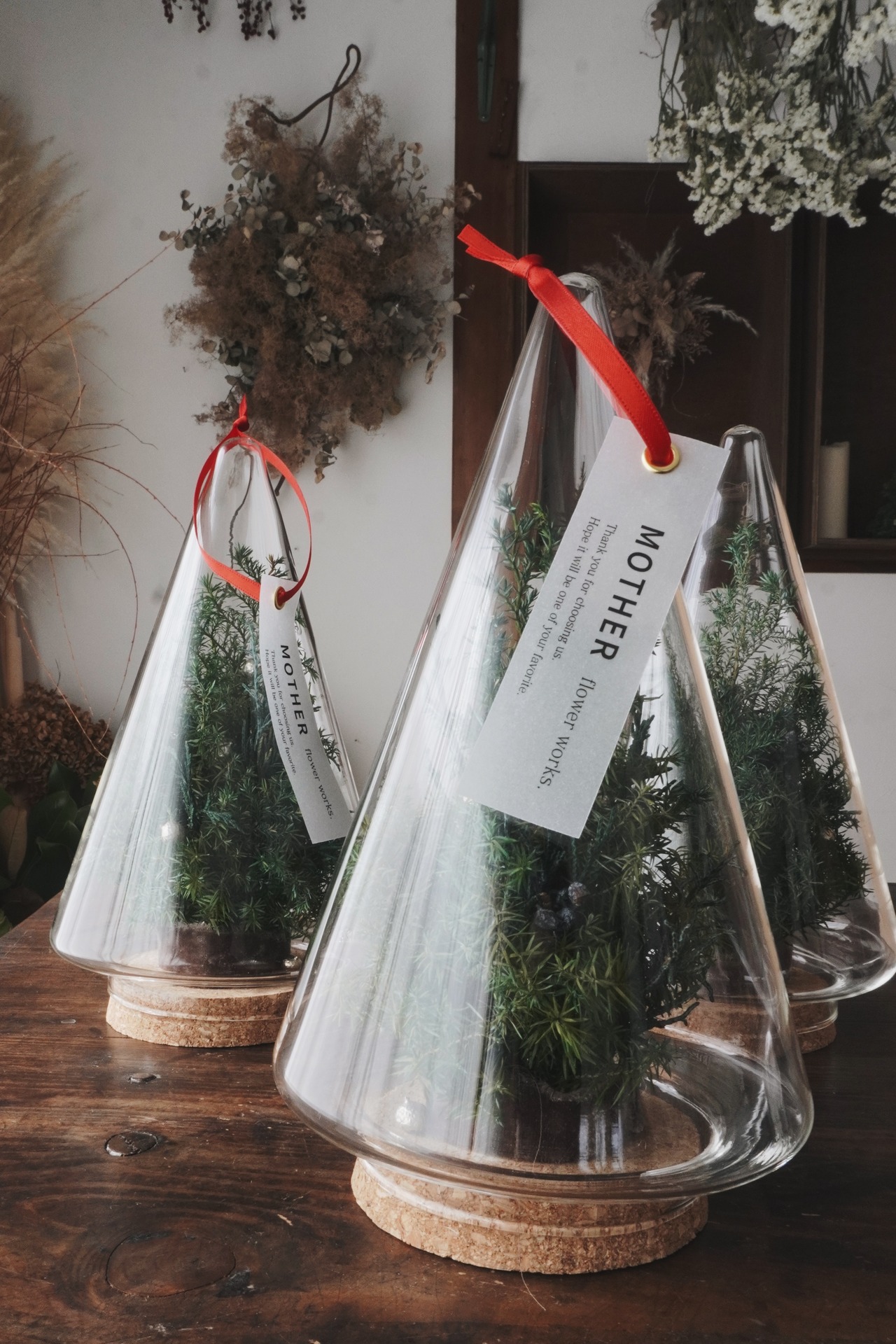 ガラスの中に、ちいさな森をとじこめたようなツリー。
