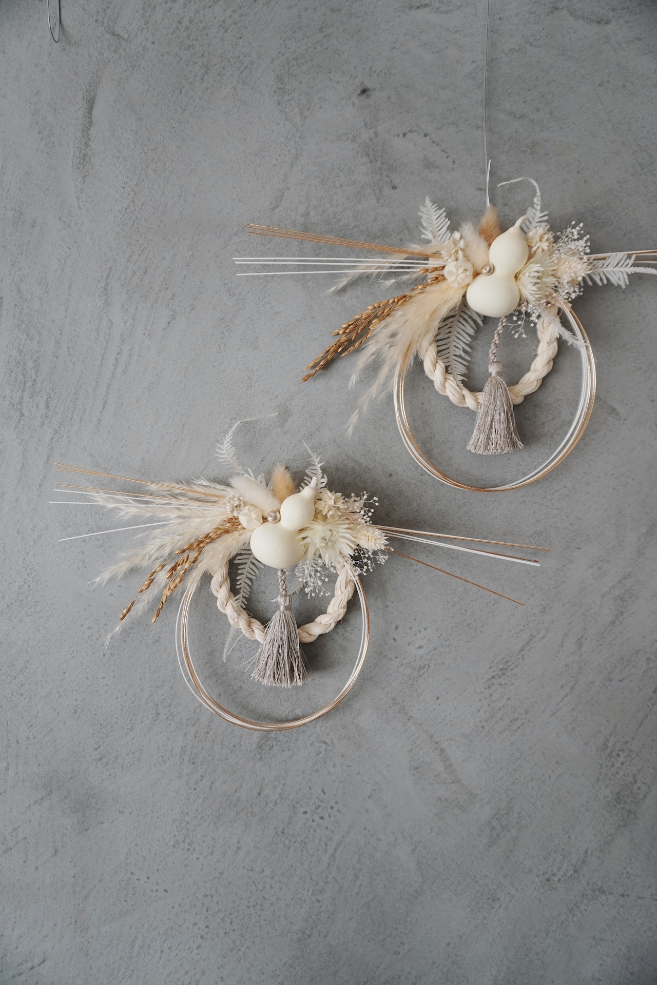 白を基調に、プリザーブドフラワーを中心にあしらったミニしめ縄。