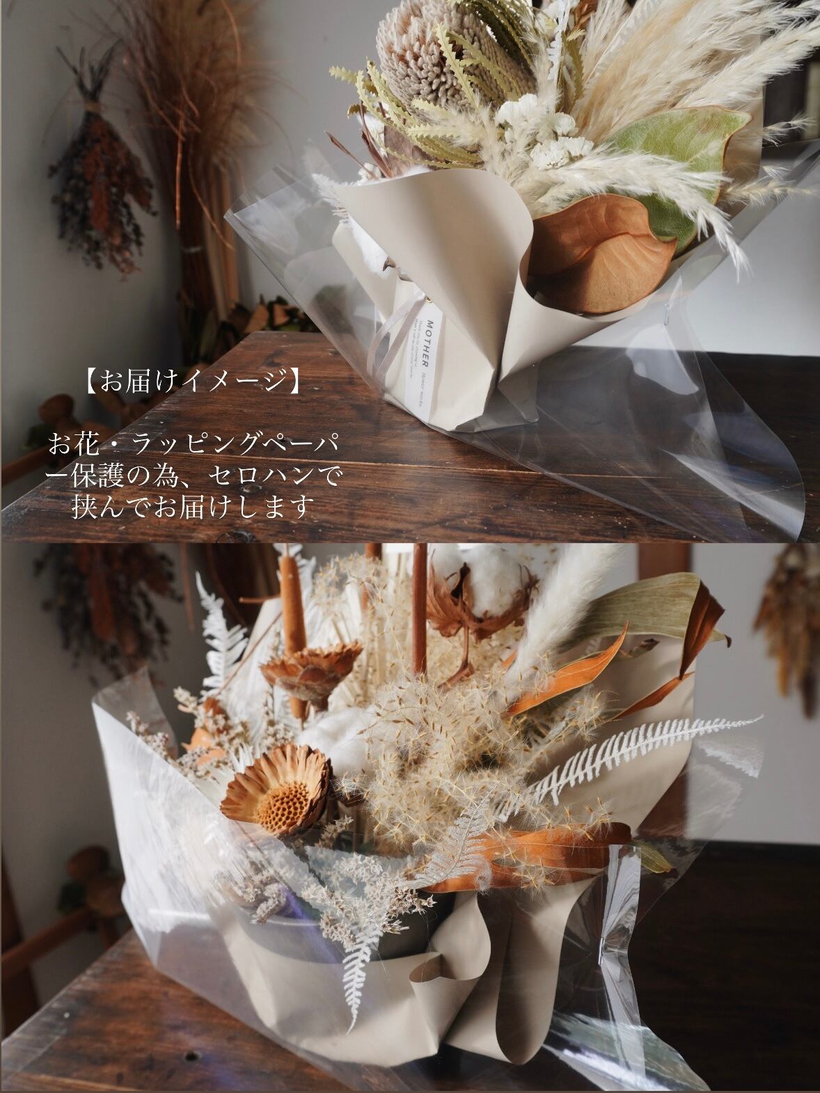 * 密閉状態での長期保管はお花の劣化につながります。お手元に届きましたら、なるべく早めに開封をお願いいたします。
