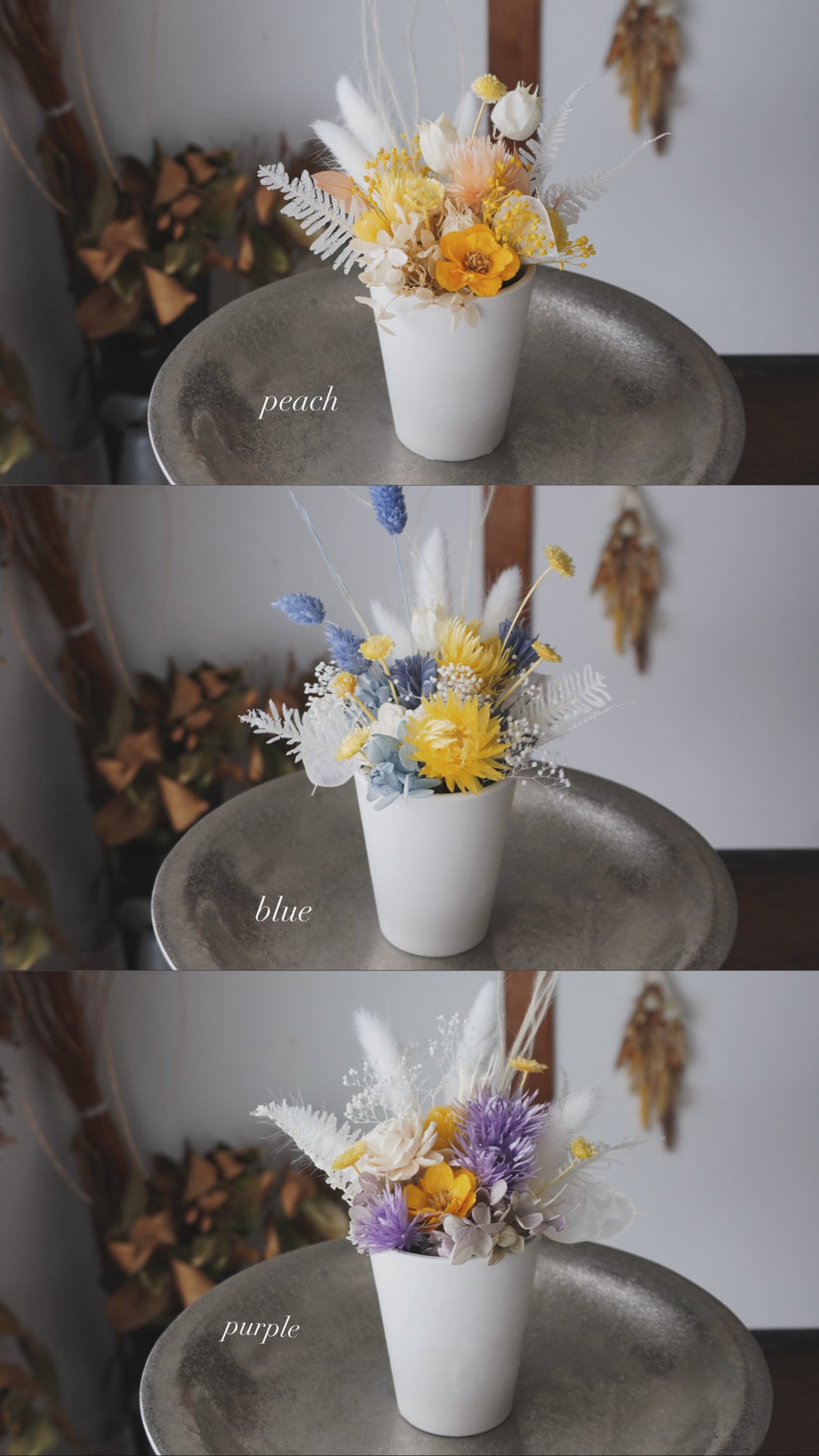 * すべて繊細な素材を使用して製作しております。梱包には細心の注意を払っておりますが、配送中の振動により花びらなどが外れる場合がございます。